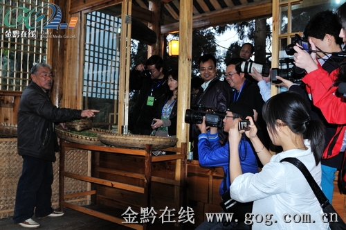 在品茶的同时,来访的网络媒体记者们也不忘关注当地旱情,凤冈县委副书记廖其刚告诉我们,同贵州大部分地区一样,凤冈县也遭遇到旱灾袭击,连续五个月少雨。作为“中国西部茶海”的重要组成部分之一,凤冈县的茶叶产量受到一定程度的影响,过去每亩茶叶年收入约为6000到8000元,今年估计会减少1500到2000元左右。不过,田坝村正凭借其80%以上的森林覆盖率,用良好的自然生态与老天做着拉锯战,县里农业部门也及时派出技术人员指导防旱保摘工作。(记者 谭畅 李瑜峰)